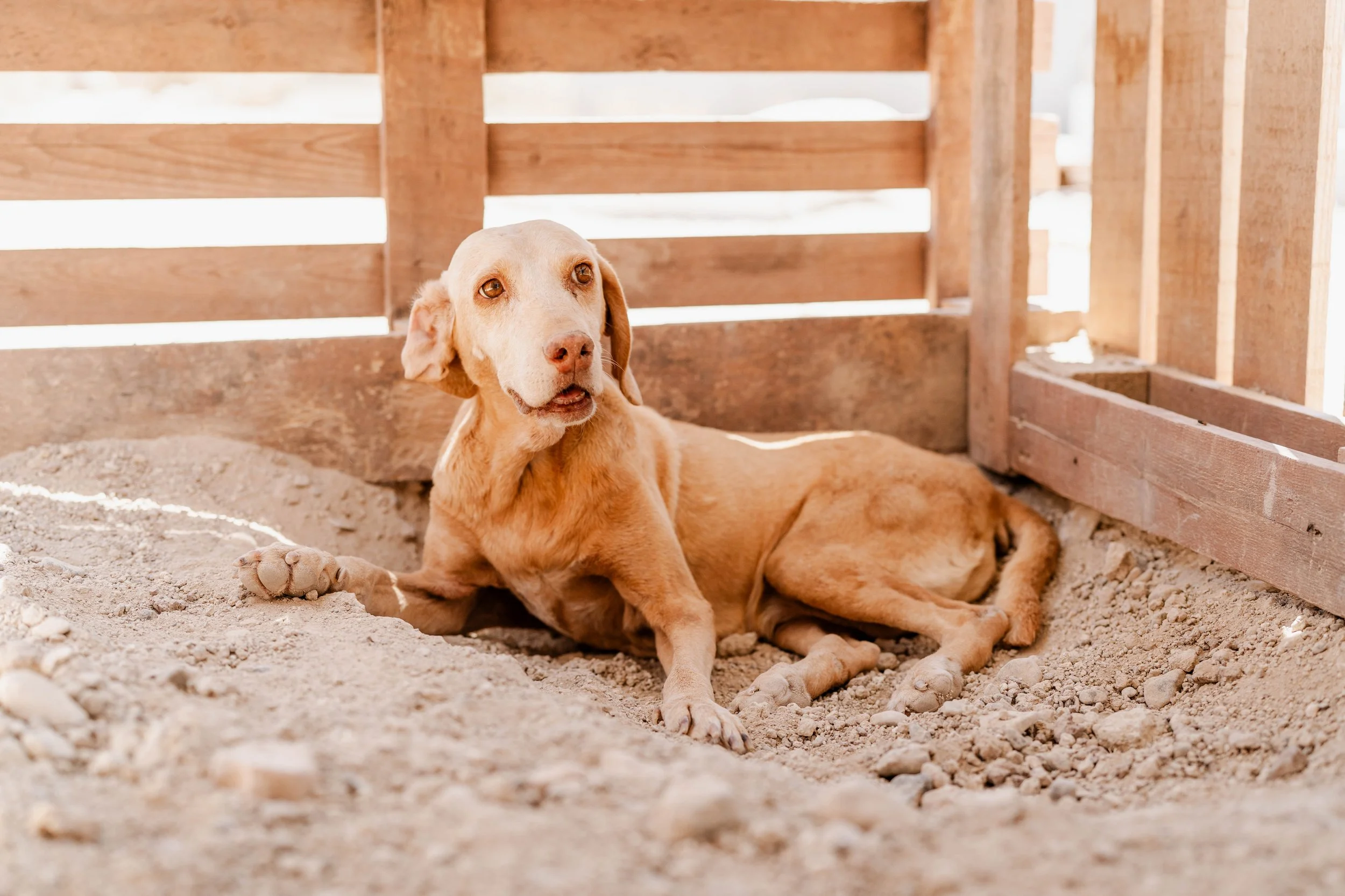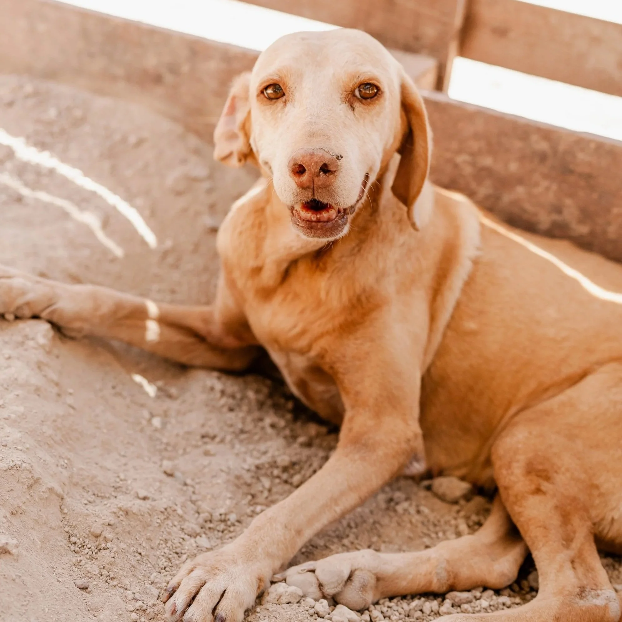 Katy wurde angefahren und kam danach zu uns ins Shelter. Am Anfang zog sie ihre Beine hinter sich her und konnte ihre Blase nicht kontrollieren. Schritt für Schritt hat sie sich jedoch zurück ins Leben gekämpft. Heute nutzt sie ihre Beine wieder, auch wenn ihre Hinterbeine noch etwas schwanken. Ihre Blase ist mittlerweile kein Problem mehr.