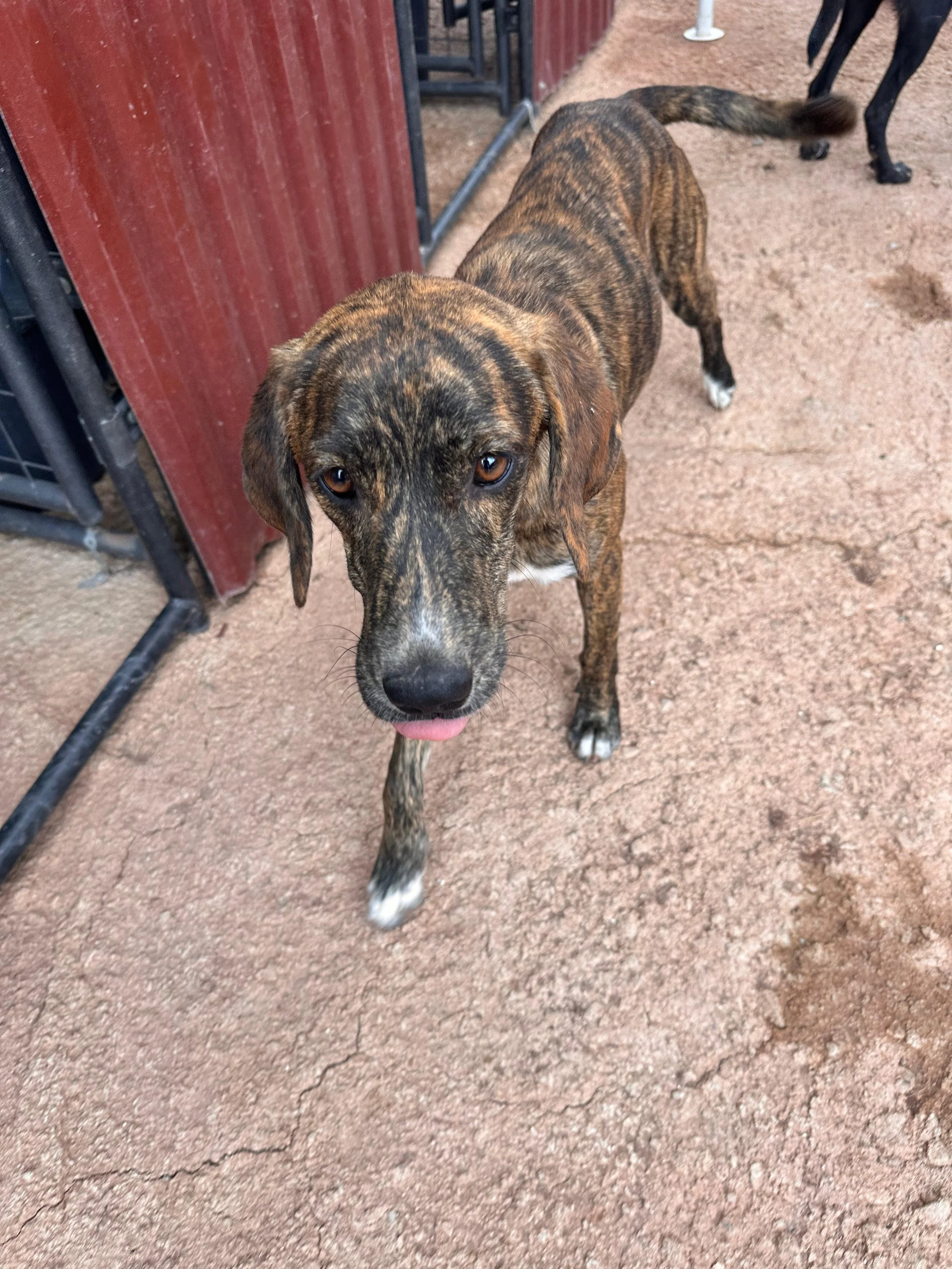 She gets along well with other dogs and enjoys playing with them, but she also loves human attention and affection. She is good with children and friendly with all people.