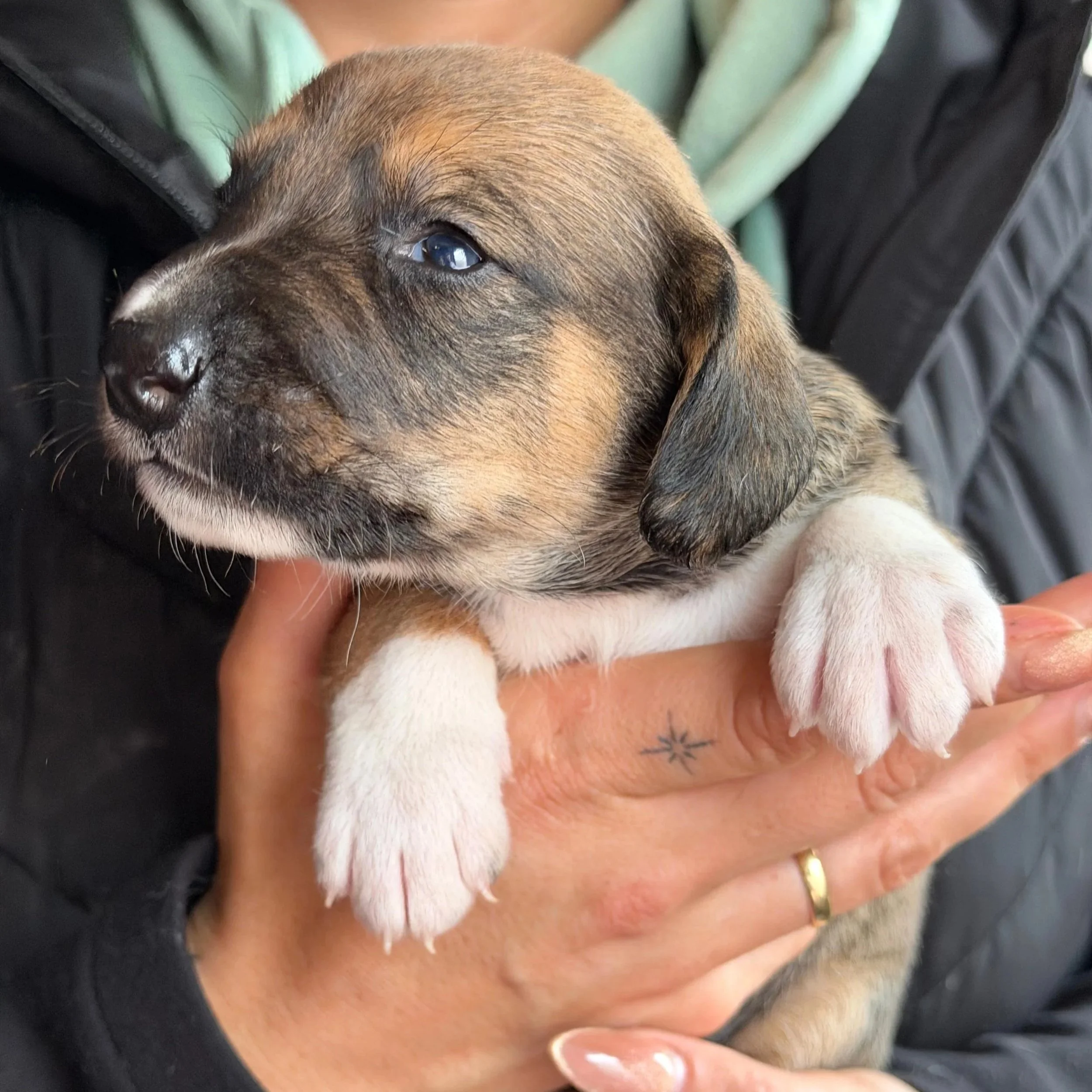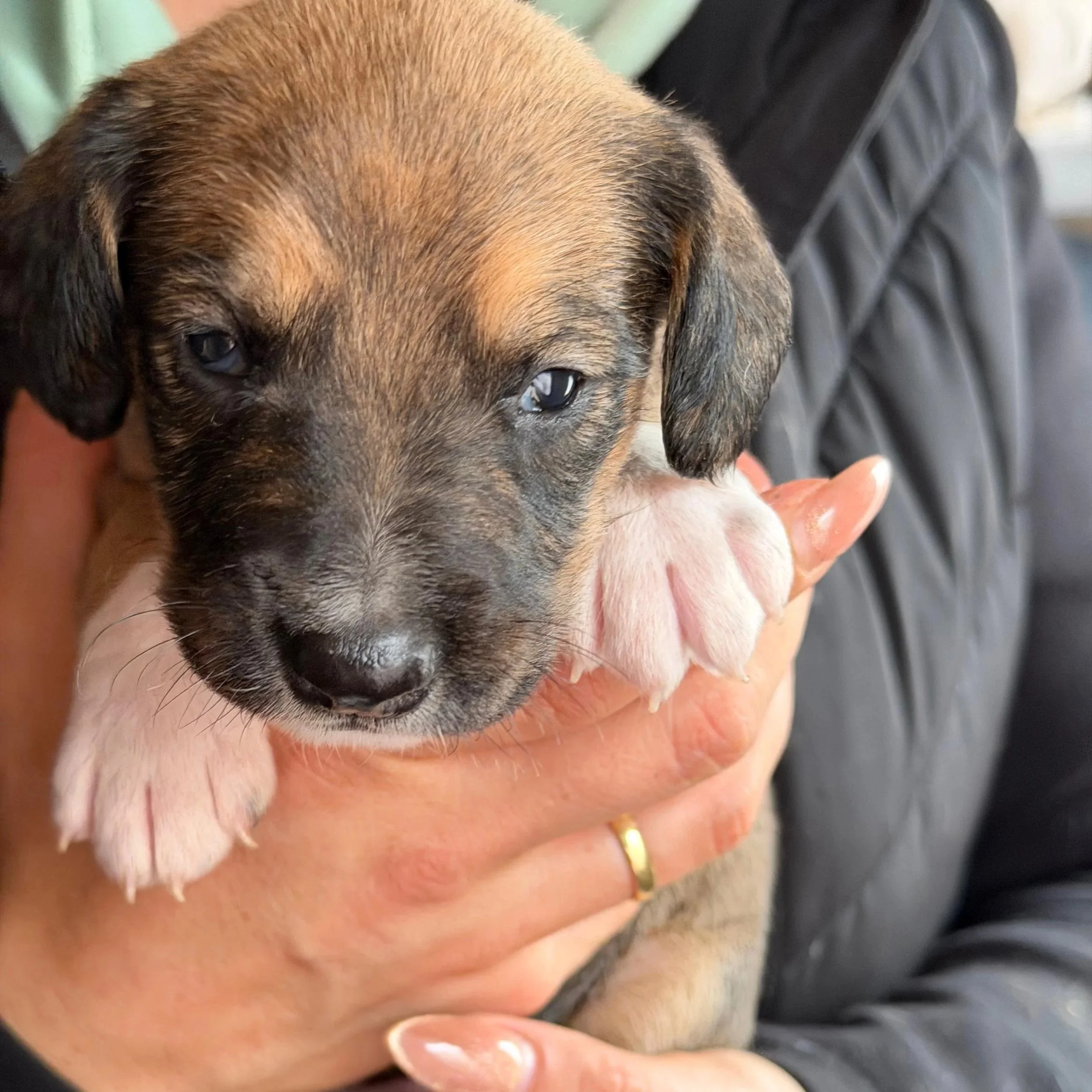 Gesundheitszustand: gesundDüdels ist einer von fünf Welpen, die Anfang Januar im Shelter geboren wurden. Seine Mutter hatte zuvor auf den Straßen der Stadt gelebt, bis sie von einer Helferin aufgenommen und in Sicherheit gebracht wurde. Dass sie trächtig war, wusste zu diesem Zeitpunkt noch niemand – und so begann ganz unerwartet das Leben von fünf kleinen Hundekindern, darunter auch Düdels.
