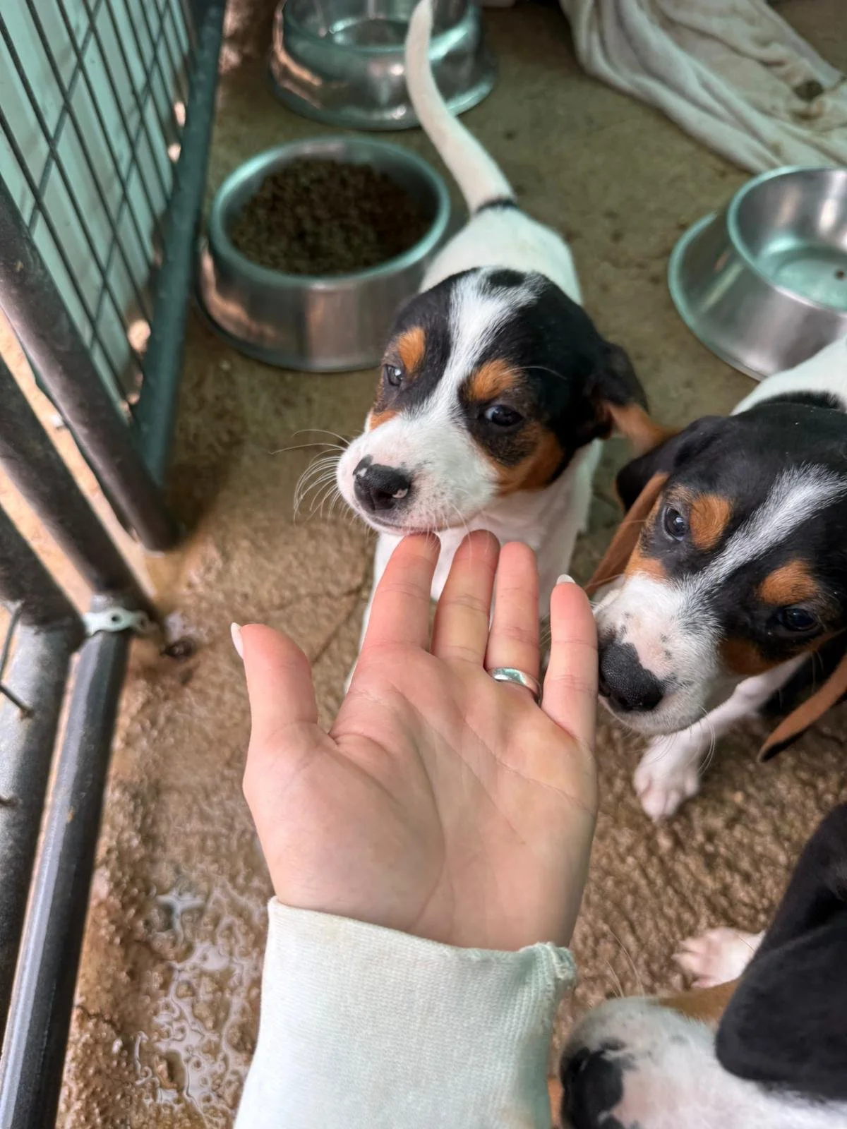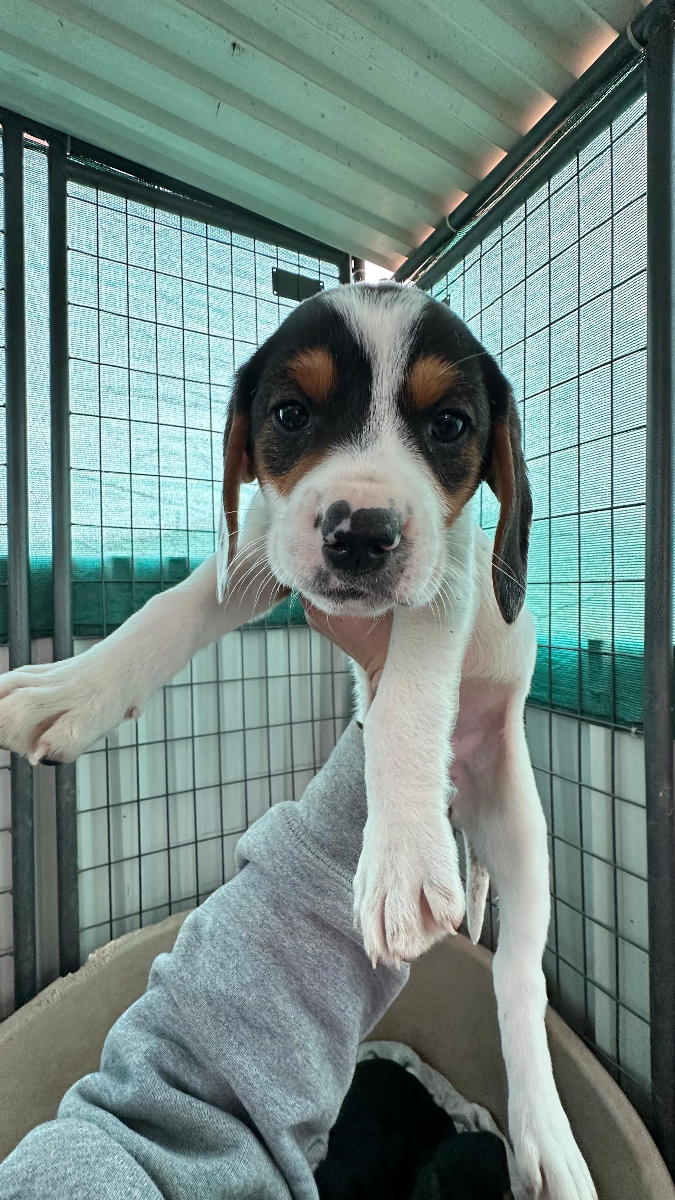 State of Health: healthyThis young mixed-breed female puppy was born in December 2025 on the streets, under a tree, together with her littermates. At around four weeks of age, she and her five siblings were safely rescued and brought to the shelter. Efforts are still ongoing to catch and secure the mother.