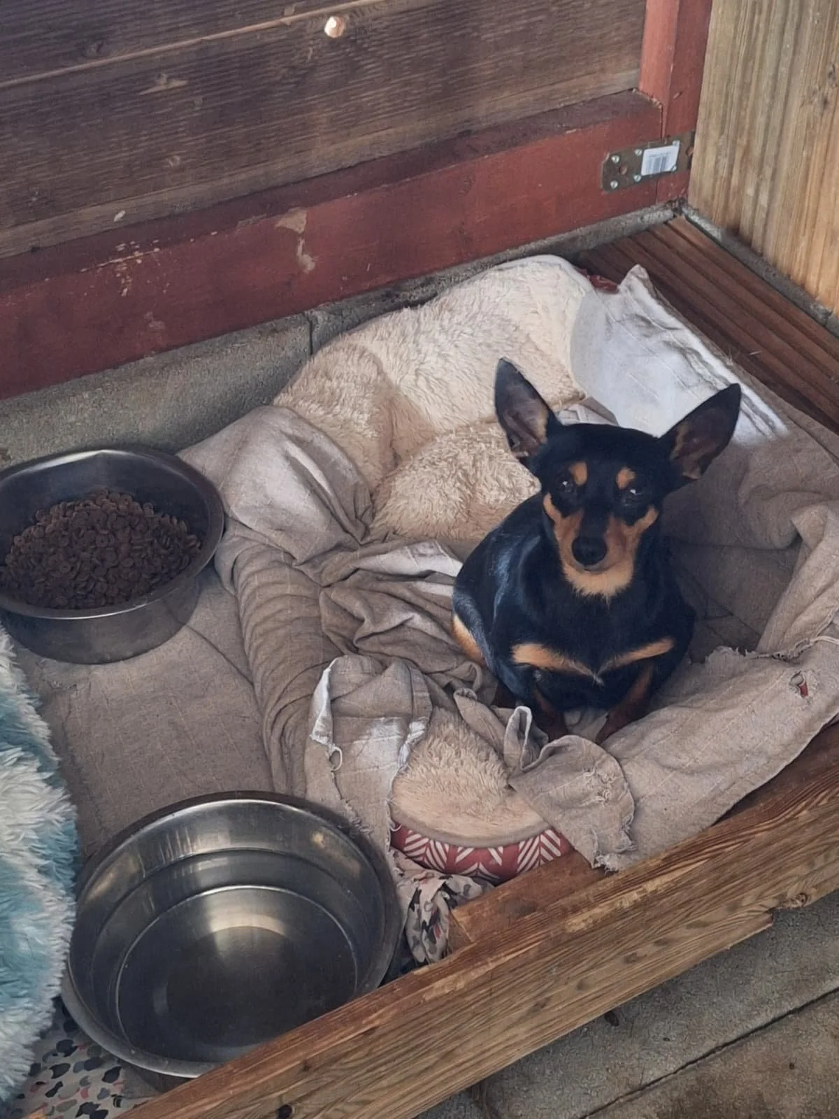 Gesundheitszustand: gesundPenny ist eine ca. 3 Jahre alte Zwergpinscher-Hündin, die derzeit im Shelter lebt. Dort hat sie ihre Welpen zur Welt gebracht und geht ganz in ihrer Mamarolle auf. Sie kümmert sich sehr aufmerksam und fürsorglich um ihre Kleinen und zeigt dabei ein ruhiges, ausgeglichenes Wesen.