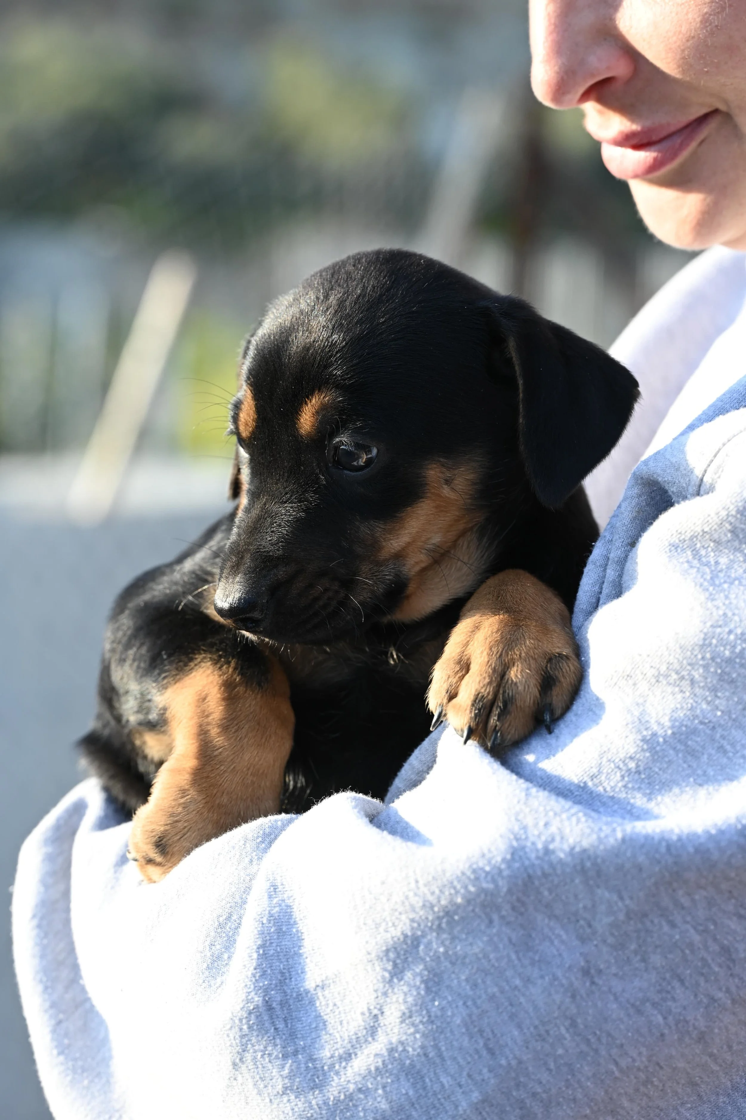 Gesundheitszustand: gesundK285P2 ist eine weibliche Schäferhund-Mischlingswelpin, die zusammen mit ihrer Schwester und weiteren Geschwistern aus einer Tötungsstation gerettet wurde. Ihr Start ins Leben war alles andere als einfach, doch sie zeigt sich als lebensfrohe, aktive und welpentypisch verspielte kleine Hündin, die neugierig ihre neue Welt erkundet.