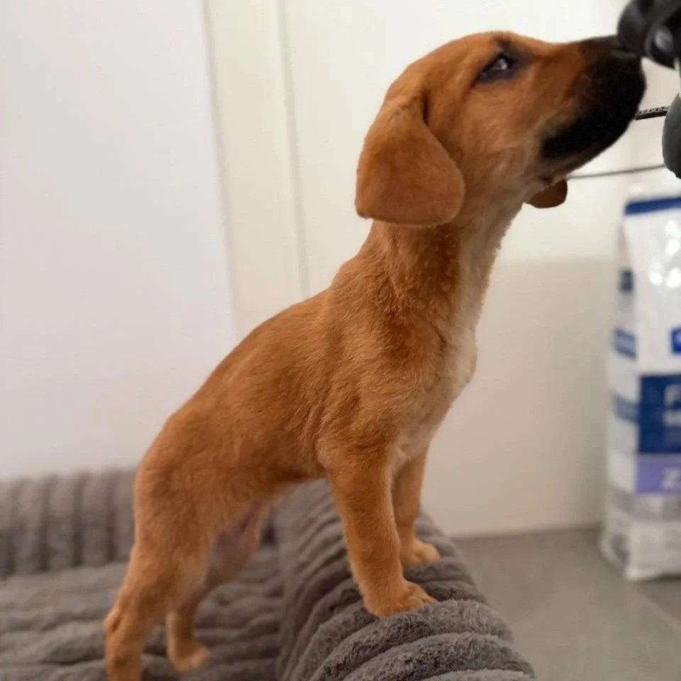 Gesundheitszustand: gesundBella ist eine bezaubernde Mischlingswelpin, verspielt und verschmust – ganz welpentypisch. Sie zeigt sich sehr sozial und versteht sich gut mit anderen Hunden.