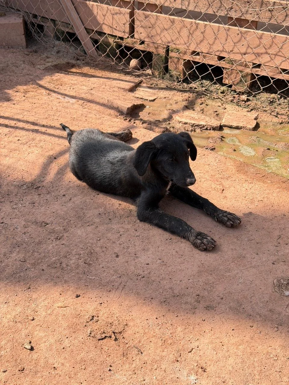 Er wird einmal etwa 50–55 cm groß werden und sucht ein Zuhause, das zu seinem bewegungsfreudigen Wesen passt. Mit Kindern kommt er gut zurecht, diese sollten jedoch schon etwas standfest sein.